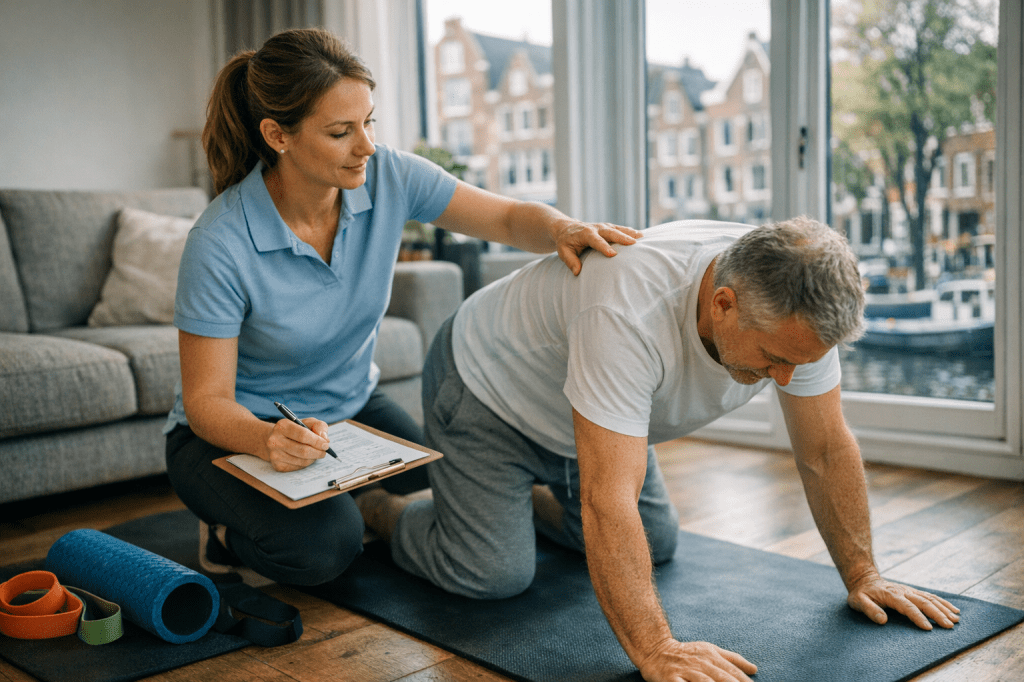 Thuisbehandeling door een fysiotherapeut is ideaal in situaties waarin naar de praktijk komen simpelweg niet haalbaar of wenselijk is. Denk bijvoorbeeld aan de periode na een heup- of knieoperatie, wanneer vervoer nog te pijnlijk of onmogelijk is. Ook bij neurologische aandoeningen zoals MS, Parkinson of na een beroerte biedt thuisfysiotherapie uitkomst, omdat oefeningen direct in de dagelijkse leefomgeving kunnen worden toegepast. Voor ouderen met een verhoogd valrisico is het extra waardevol om veilig thuis te kunnen trainen, in een vertrouwde omgeving waar ze zich op hun gemak voelen.